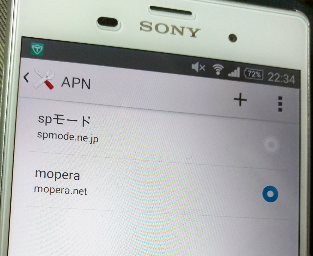 取り敢えず手順2の「UNLOCK」までしました。ドコモのカケホsimを入れて「mopera」のAPNを設定しました。